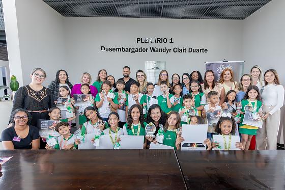 A solenidade de premiação do concurso cultural "A Escola Ensina, A Mulher Agradece", uma parceria da Prefeitura de Cuiabá com o Judiciário, ocorreu na sede do Tribunal de Justiça de Mato Grosso.