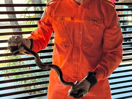 O Corpo de Bombeiros Militar de Mato Grosso (CBMMT) capturou, na tarde desta segunda-feira (2.3), uma cobra da espécie sucuri, de aproximadamente 1,5 metros de comprimento, em uma residência localizada no bairro Tropical, no município de Água Boa (639 km de Cuiabá).
