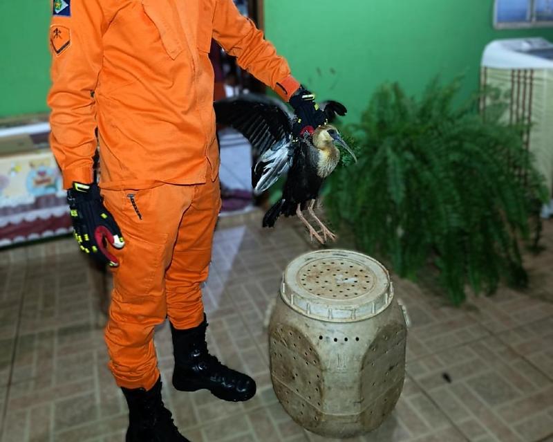 Em Poconé, a equipe do 1º Pelotão Independente Bombeiro Militar (1º PIBM) foi acionada na noite de quinta-feira (5) para atender a um chamado no bairro Boa Nova, onde uma ave havia caído no quintal de uma residência.