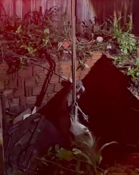 A equipe do 2º Batalhão de Bombeiros Militar (2º BBM) foi acionada pelo Centro Integrado de Operações de Segurança Pública (Ciosp), por volta das 18h, sendo informada de que o animal estava dentro do poço, com o nível da água atingindo a altura da barriga.