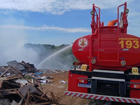 O Corpo de Bombeiros Militar de Mato Grosso (CBMMT) combateu, neste domingo (18.1), incêndio em um aterro sanitário na região do bairro Buritis, em Primavera do Leste (243 km de Cuiabá).