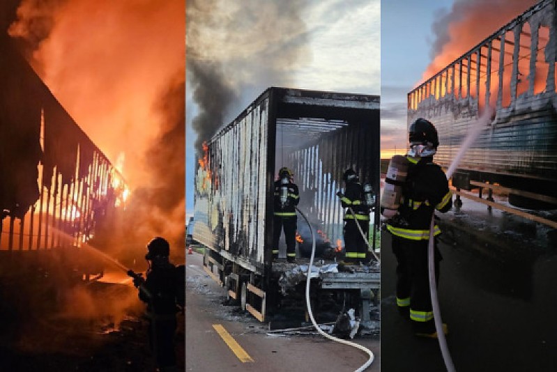Em contato com o motorista da carreta, ele informou que o fogo teve início na região do eixo do veículo, por volta das 3h00. O condutor relatou ainda que tentou obter ajuda em uma fazenda próxima, porém sem sucesso.