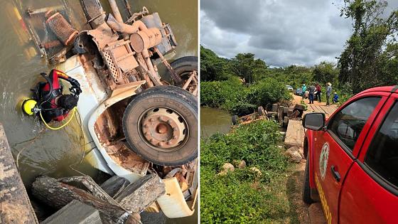 O Corpo de Bombeiros Militar de Mato Grosso (CBMMT) resgatou, nesta terça-feira (3.3), o corpo de uma mulher que ficou presa na cabine de um caminhão que caiu de uma ponte sobre o Rio Corgão, nas proximidades da Estrada do Caxanga, zona rural de Vila Rica (a 1.131 km de Cuiabá).