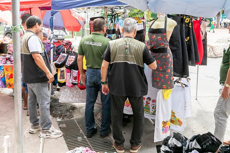A Secretaria Municipal de Ordem Pública realizou, nesta quinta-feira (15), uma operação de fiscalização na região central de Cuiabá, especialmente na Rua 13 de Junho, que resultou na apreensão de mercadorias de três vendedores ambulantes que atuavam de forma irregular nas calçadas. Entre os produtos recolhidos estavam mercadorias de um vendedor de pequi, de óculos e de artesanato.