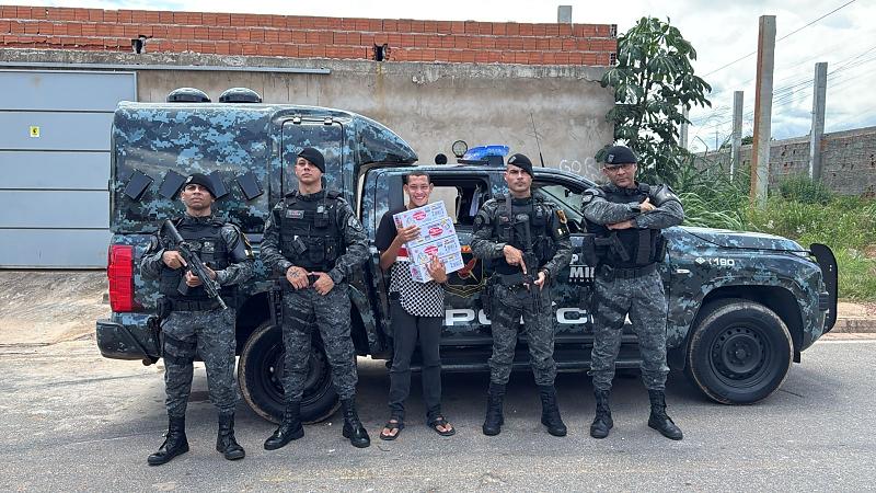 O jovem Danilo, conhecido como “Paçoquinha”, que foi alvo de constrangimento e bullyning, dentro de um ônibus do transporte coletivo de Cuiabá, protagonizou um momento de emoção nesta quarta-feira (4), ao receber a visita de policiais da Rotam em sua casa.