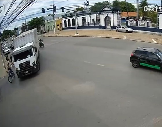 Câmeras de segurança flagraram o momento em que o venezuelano José Rafael Farfan, de 48 anos, é atropelado por um caminhão. O acidente aconteceu no início da tarde desta sexta-feira (7), na Avenida Senador Metelo, no bairro Porto, em Cuiabá.