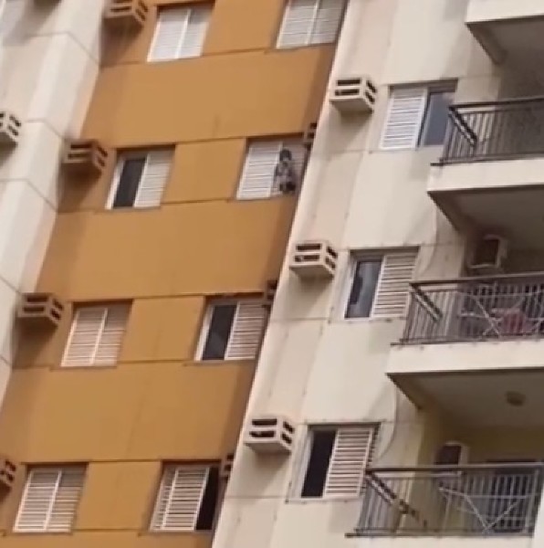 Um vídeo gravado por moradores de um condomínio no bairro Morada do Ouro, em Cuiabá, causou preocupação ao mostrar uma criança caminhando pela janela de um apartamento, no último domingo (15). A idade dela não foi divulgada.