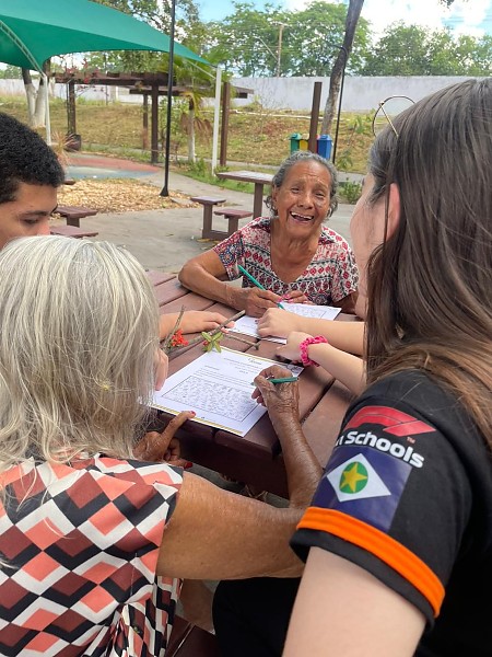 Desde outubro de 2025, os jovens de 16 a 18 anos realizam encontros semanais no abrigo, organizando oficinas cognitivas, digitais e socioemocionais. As atividades acontecem atualmente duas vezes por semana, com duração de uma hora, e atendem um grupo fixo de cinco idosos, todos com mais de 70 anos. A escolha dos participantes é feita em conjunto com a equipe técnica da Fundação, que também oferece espaço, apoio institucional e acompanhamento profissional.