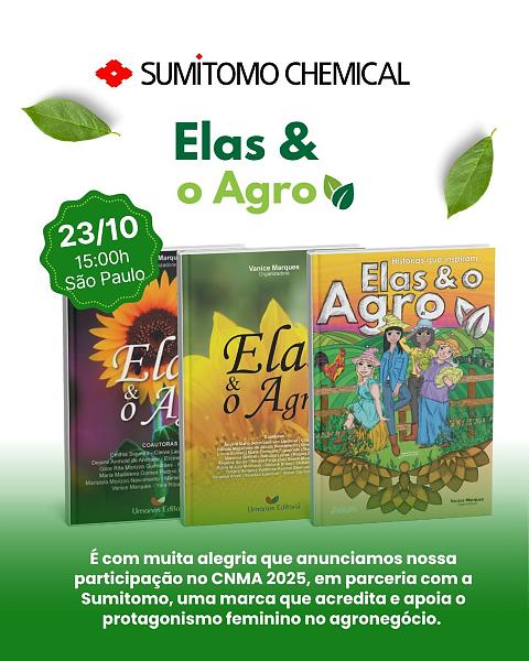 O livro Elas & o Agro terá sessão de autógrafos no Congresso Nacional das Mulheres do Agro (CNMA) 2025, em parceria com a Sumitomo Chemical, nesta quinta-feira (23).