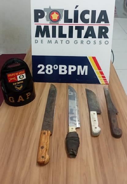 Com base nas informações, os militares iniciaram diligências em um assentamento próximo, onde localizaram o segundo envolvido em um barraco de lona. Durante a abordagem, ele apresentava sinais de embriaguez e chegou a empunhar um facão, sendo contido posteriormente pelos policiais.