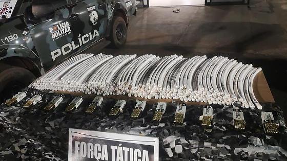 Policiais militares da Força Tática do 12º Comando Regional apreenderam 284 emulsões explosivas (explosivos de alta performance utilizados em mineração), 600 munições calibre 9 milímetros e porções de substância análogas à maconha, durante abordagem, nesta quarta-feira (5), no município de Pontes e Lacerda (445 km de Cuiabá).