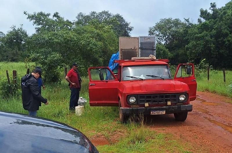 Foram iniciadas buscas veiculares e, na caçamba da caminhonete, foram localizadas munições de calibre 22 dentro de uma caixa e, em um compartimento de ferro oco, uma espingarda calibre 22, uma espingarda de pressão (aparentemente adaptada para calibre 22), munições calibre 38 e munições calibre 22.
