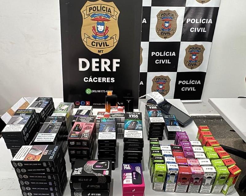 A Polícia Civil de Mato Grosso deteve dois jovens, ambos de 20 anos, por receptação de cigarros eletrônicos, em Cáceres, nesta segunda-feira (19).
