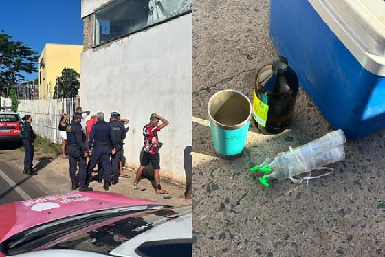 Durante a abordagem, os guardas constataram que o homem apresentava sinais visíveis de embriaguez. No veículo, foram encontrados três frascos com líquido semelhante a lança-perfume, um triturador usado para consumo de maconha e um frasco de um litro de cola para acrílico, itens utilizados na produção da substância.