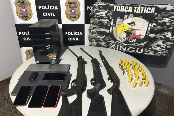 A ação integrada foi realizada para cumprimentos de mandados de busca e apreensão domiciliares, e contou com apoio da Polícia Militar. Três armas de fogo, várias munições e eletrônicos foram apreendidos.