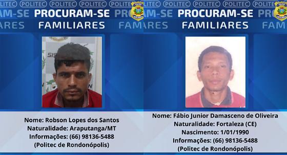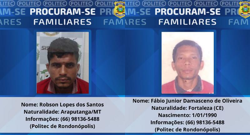A Perícia Oficial e Identificação Técnica (Politec) busca familiares de duas pessoas que foram identificadas pela Gerência Regional de Identificação de Rondonópolis, mas que, até o momento, não tiveram parentes localizados, o que impede a retirada dos corpos e o sepultamento.