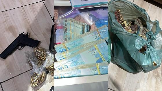 Até o momento, uma pessoa foi presa em flagrante pelo crime de posse ilegal de arma de fogo de uso restrito. Também foi realizada a apreensão de grande quantidade de dinheiro. As diligências seguem em andamento.